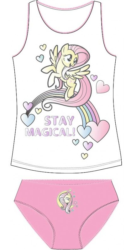 Wygodny komplet bielizny dla dziewczynki. Koszulka na cienkich ramiączkach + majteczki. Z przodu aplikacja My Little Pony.