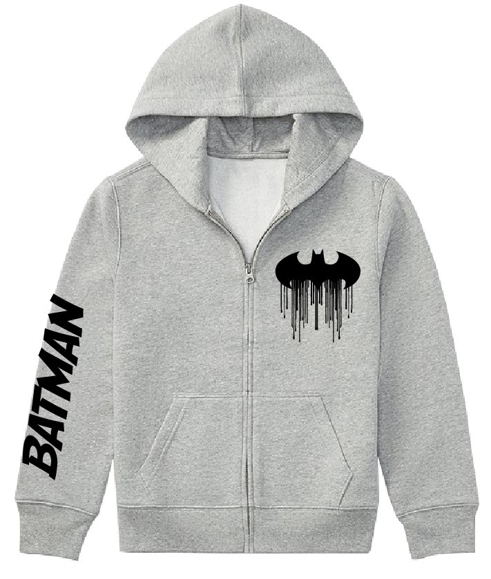 Rewelacyjna, unikatowa ciepła bluza z kapturem, kieszeniami, zapinana na zamek, z miłego i przyjemnego w dotyku materiału (z meszkiem) z pewnością przypadnie do gustu każdemu małemu fanowi Batmana.