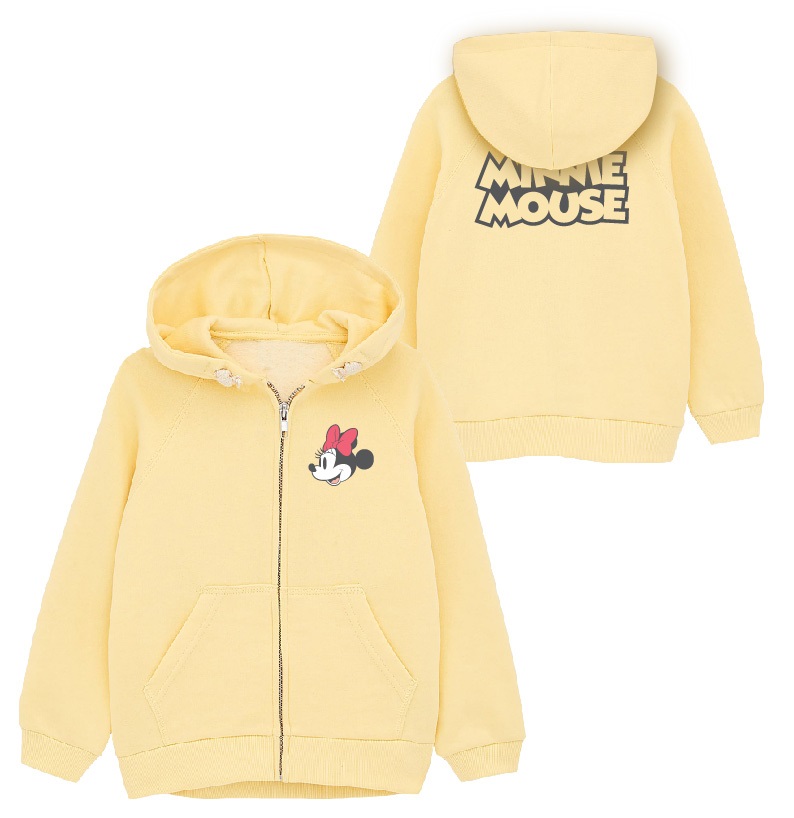 Rewelacyjna, unikatowa ciepła bluza z kapturem, kieszeniami, zapinana na zamek, z miłego i przyjemnego w dotyku materiału (z meszkiem) z pewnością przypadnie do gustu każdej fance Myszki Minnie.