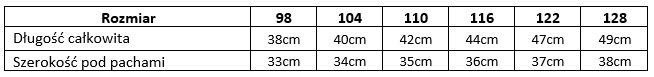 Podane wymiary w tabeli, są wymiarami mierzonymi na płasko w centymetrach, mogą różnić się +/- 2cm.