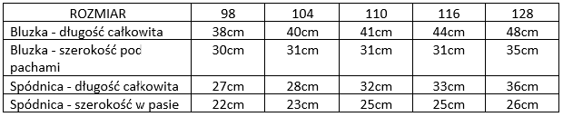 - Zestaw dla dziewczynki z delikatnej bawełny. Spódniczka posiada szeroką gumę w pasie.