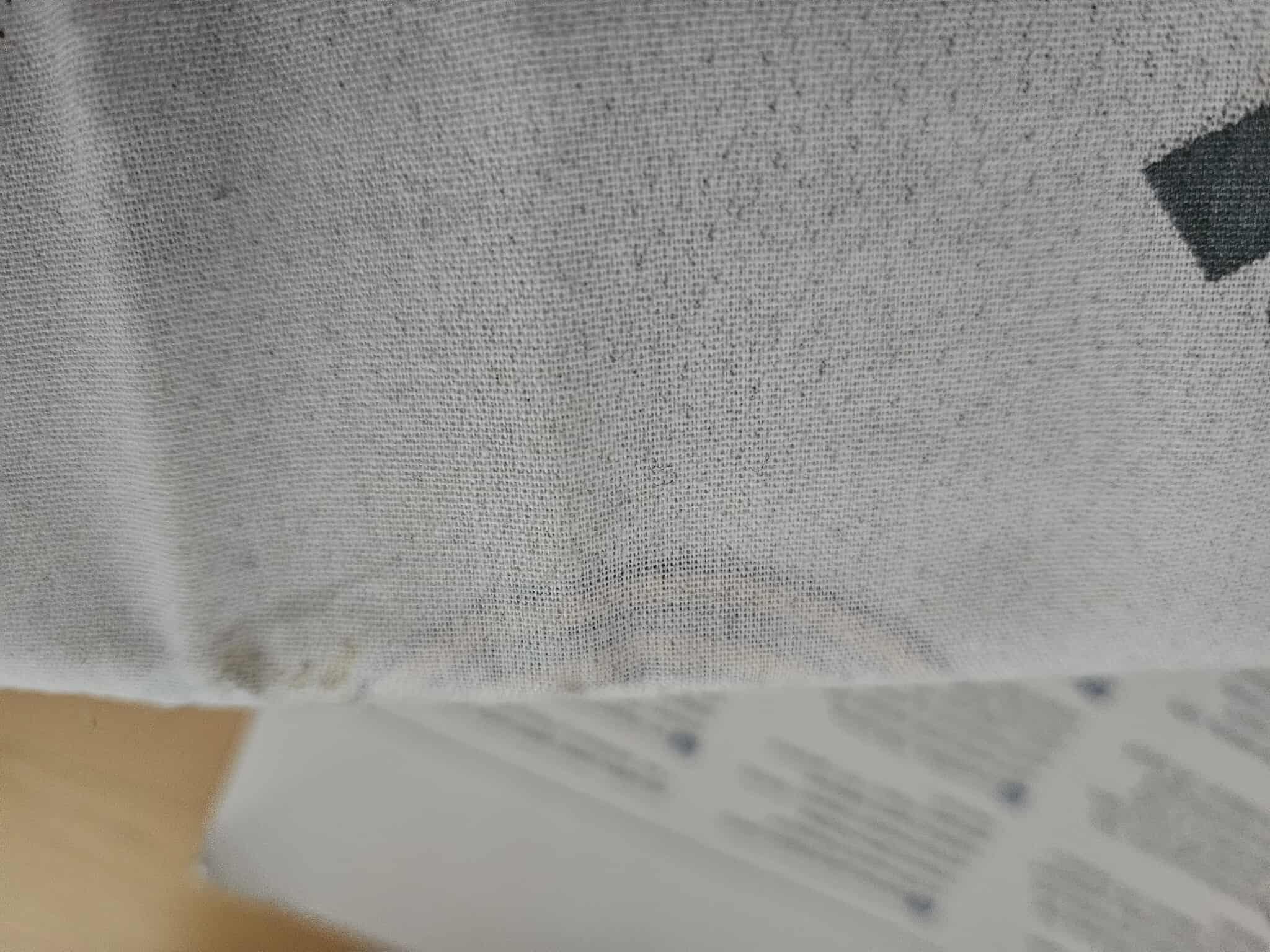 Pościel lekko przybrudzona na zgięciu wymaga prania.