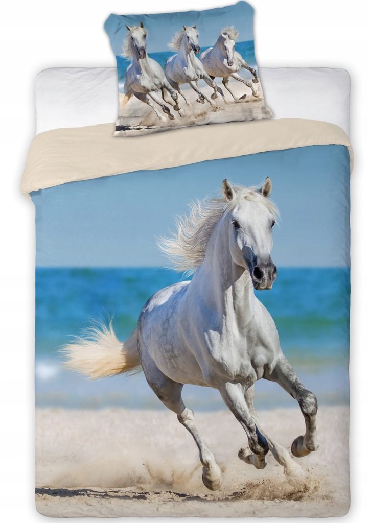 Koń Biały Pościel bawełniana dwustronna 140x200cm
