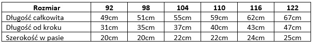 Wymiary podane w tabeli są w centymetrach, mierzone na płasko. Mogą różnić się +/- 2cm
