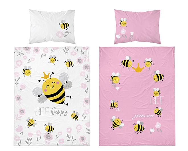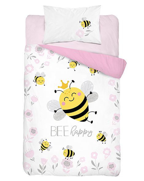 Pościel bawełniana dwustronna 100x135cm różowe pszczółki