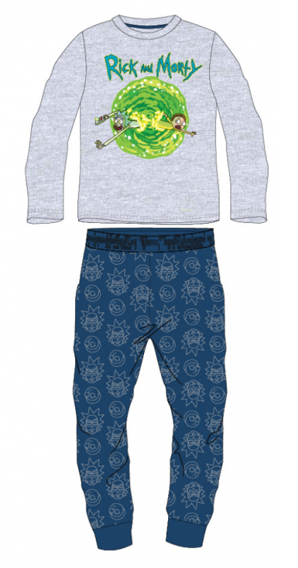 Piżama chłopięca składa się z bluzki z długim rękawem i długich spodni.