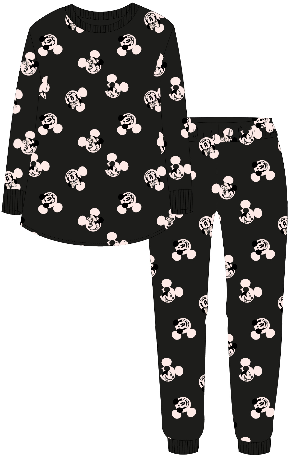 Komplet piżamy damskiej Minnie składa się z bluzki z długim rękawem i długich spodni.