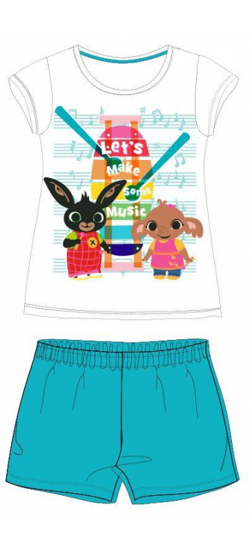 Komplet piżamy dziewczęcej składa się z bluzki z krótkim rękawem i spodenek.