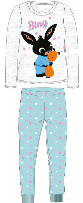 Komplet piżamy dziewczęcej składa się z bluzki z długim rękawem i długich spodni.