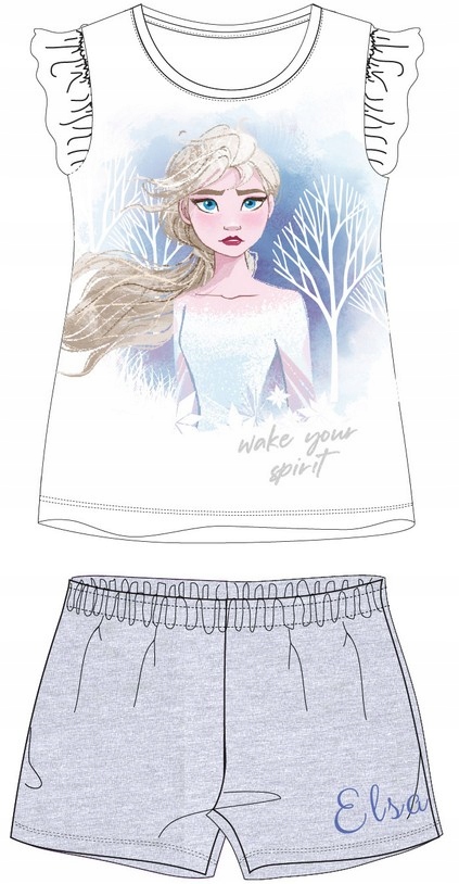 Piżama Frozen składająca się z bluzki z krótkim rękawem oraz luźnych spodenek.