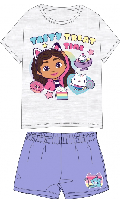 Piżama letnia Koci Domek Gabi składa się z bluzki z krótkim rękawkiem i spodenek.