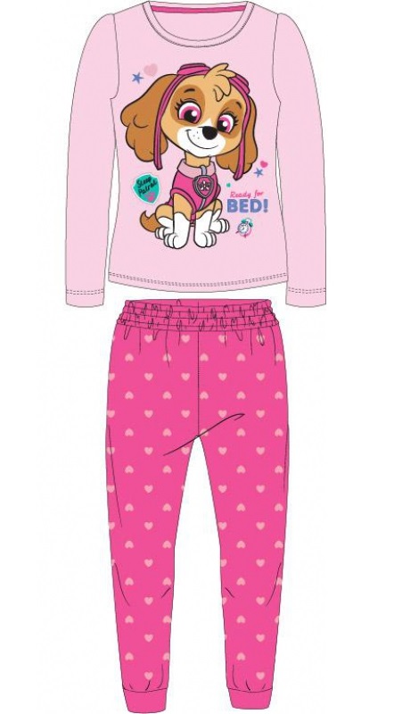 Piżama Psi Patrol składająca się z bluzki z długim rękawkiem i długich spodni w serduszka.