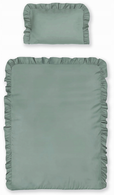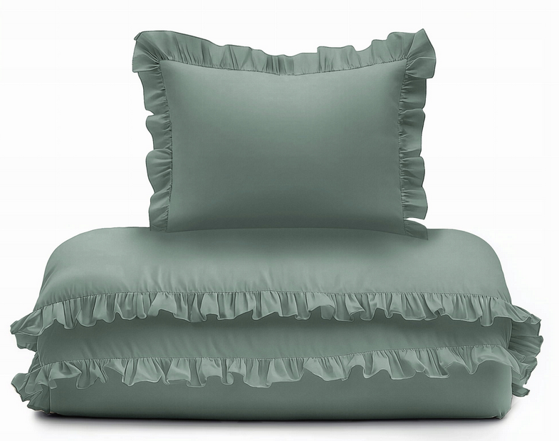 Pościel bawełna mięta szałwia zielony z falbanką jednobarwna 100x135cm