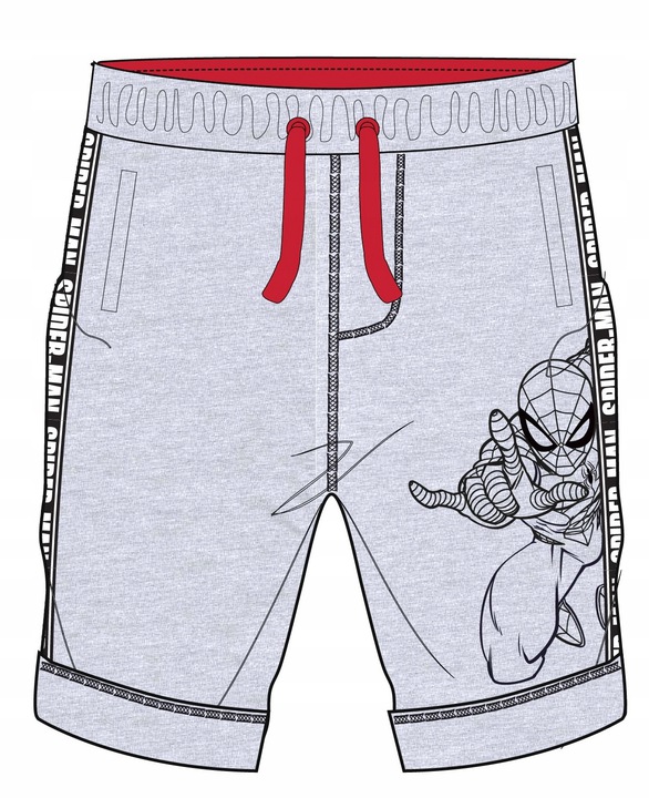 Spodenki, szorty z ulubionym dziecięcym bohaterem – Spider-manem. Przyjemny w dotyku materiał. Dwie boczne kieszonki, szeroka guma, ściagacz i sznureczek w pasie. Luźny krój zapewni komfort noszenia. Fason doskonale dopasowuje się do chłopięcej sylwetki. Grafika została wykonana przy pomocy specjalistycznej techniki nanoszenia kolorów, dlatego też jest bardzo realistyczna. Wykonanie z wysokogatunkowej bawełny, która nie powoduje żadnych reakcji uczuleniowych naskórka oraz przepuszcza powietrze.