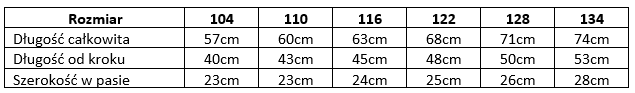 Wymiary w tabeli podane są w centymetrach, mierzone na płasko. Mogą różnić się +/- 2cm