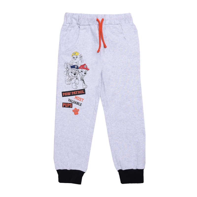 Długie spodnie z ulubionym dziecięcym bohaterem z bajki Psi Patrol. Przyjemny w dotyku materiał. Dwie boczne kieszonki, szeroka guma, ściagacz, sznureczki do wiązania i luźny krój zapewnią komfort noszenia. Fason doskonale dopasowuje się do chłopięcej sylwetki.
