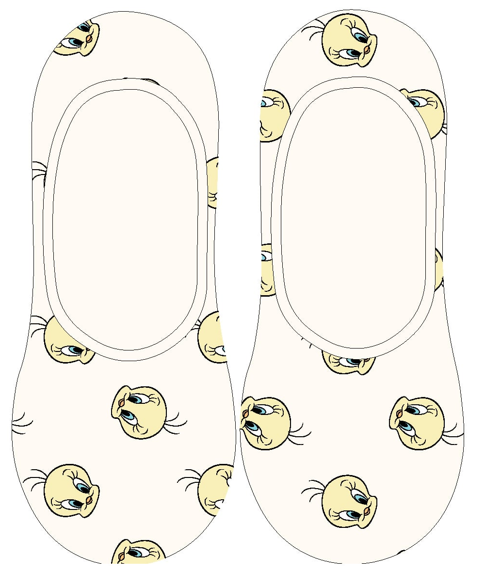 Stopki z atrakcyjnym wzorem Tweety. Idealnie dopasowują się do stóp, nie uciskają, a jednocześnie znakomicie utrzymują się na nogach, gwarantując wysoki komfort noszenia. Miękkie w dotyku.