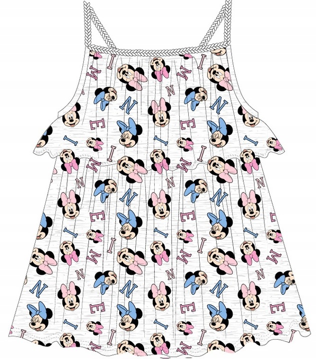 Piękna bawełniana sukienka z Myszką Minnie idealna na lato. Trwałe nadruki, które nie niszczą się po wielu praniach. Oryginalny produkt na licencji Disney’a gwarantuje, że do produkcji zostały użyte materiały wysokiej jakości bezpieczne dla zdrowia dziecka.