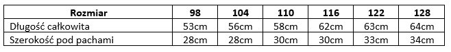 Wymiary w tabeli podane są w centymetrach, mierzone na płasko. Mogą różnić się +/- 1cm